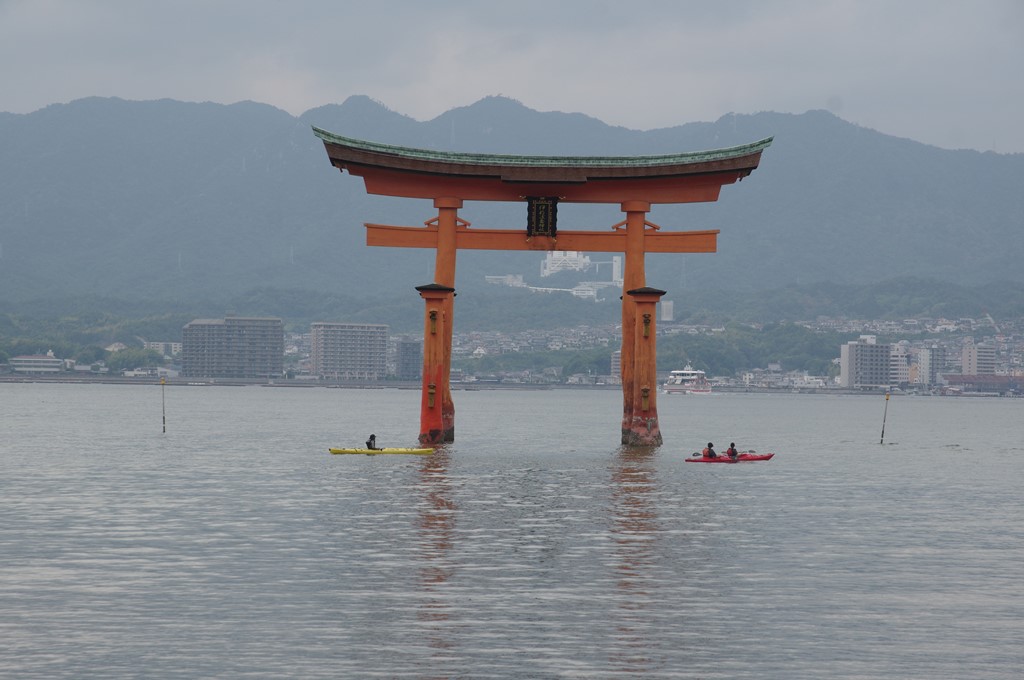 写真8は、平舞台の先端から見た大鳥居です。ご覧のようにカヌーで楽しむ人がいます。