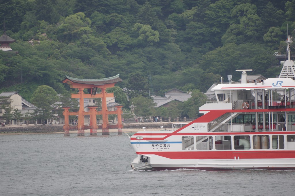 最後の写真12は、帰りの船上から大鳥居を見たもので、ちょうどフェリーが通ったところを望遠で撮ったものです。