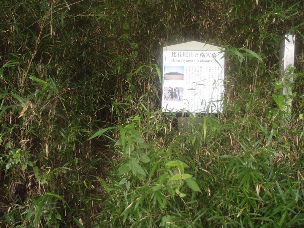 比丘尼山には7世紀頃の比丘尼横穴墓群があります。写真4は、この説明板のところで、左側に横穴が見えています。比丘尼山に沿って遊歩道が整備されて一周することができますし、串引沼への分岐路もあります。
