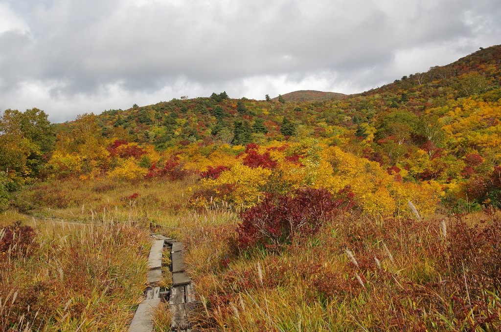 写真4は、名残ヶ原中央から右側を撮ったものです。ほぼ紅葉していますが、満開には早く8分程度です。