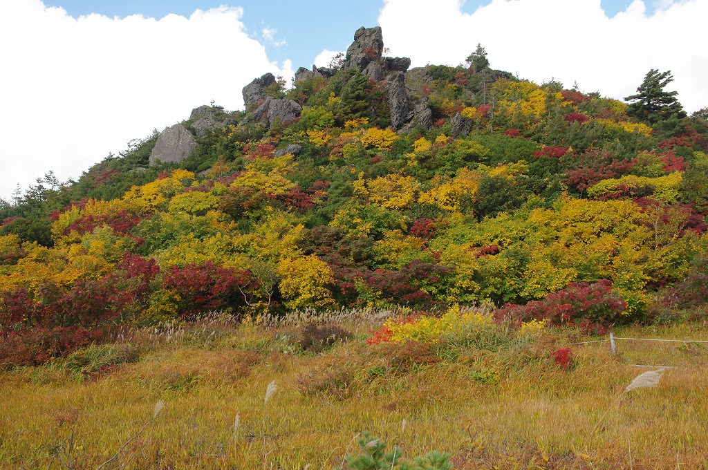 写真7は、賽の磧手前の湿原での右側の岩山です。