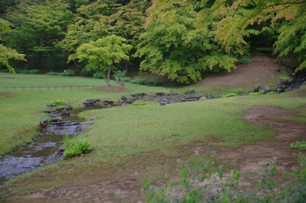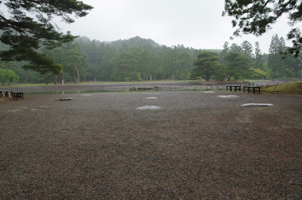 写真13は、金堂円隆寺跡の東奥、常行堂から撮った遣水です。発掘調査により遺構が発見されたもので、これを修復整備したものです。