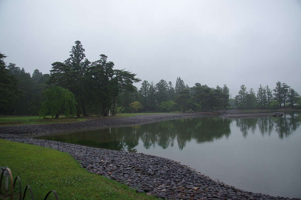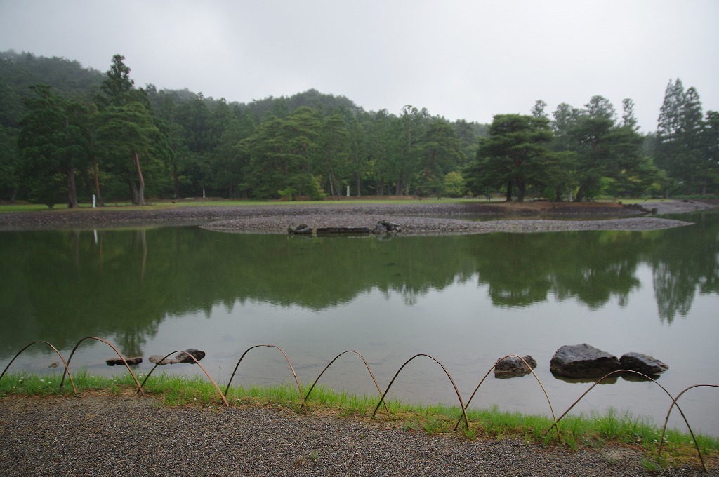 写真2は、大泉ヶ池です。池の奥が金堂円隆寺跡です。南大門から池の中島へと橋が架けられて円隆寺に通じています。ここから池を時計回りに行きます。