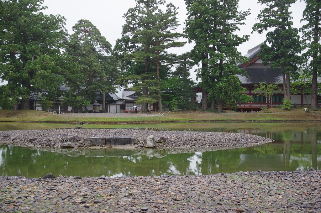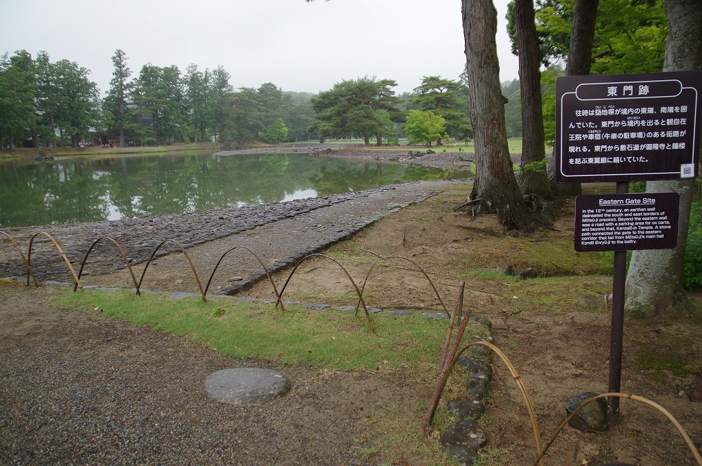 2020年6月25日(木)午後、観自在王院に続いて、西に隣接した医王山毛越寺金剛王院(岩手県西磐井郡平泉町平泉字大沢58)を参拝しました。本寺は慈覚大師円仁創建と伝えています。奥州藤原氏2代基衡が久安6年(1150)末から保元元年(1156)までの約6年間に金堂円隆寺以下の建築物・庭園を建立したと推定されて、さらに3代秀衡が造営を継続しました。この様は、「基衡これを建立す。まず金堂円隆寺と号す。金銀を鏤し、紫檀赤木等を継ぎ、万宝を尽し、衆色を交える。本仏薬師丈六を安ず」(『吾妻鏡』文治5年9月17日条)等と記されています。しかし、奥州藤原氏滅亡(1189年)の37年後、嘉禄2年(1226)11月、金堂円隆寺以下が焼失しました。発掘調査により、金堂円隆寺以下の礎石が確認され、大泉ヶ池を中心とする庭園も修復整備されて往事の様を見せています。拝観時間は8時半~17時(11月5日~3月4日は8時30分~16時30分)、拝観料は500円です。