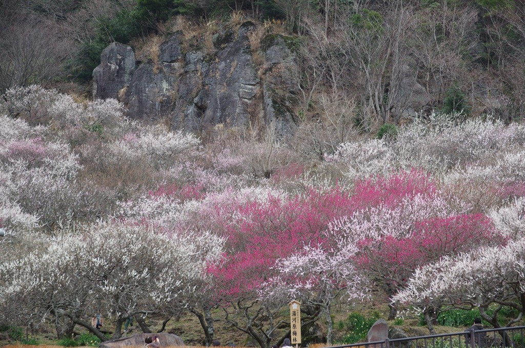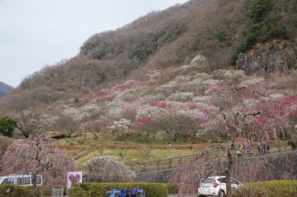 2020年2月25日(火)午後、神奈川県湯河原町の幕山公園内の湯河原梅林に行ってきました。本年は暖かく例年より1週間あまり早い開花で、はや満開過ぎでした。「梅の宴」(2月1日~3月8日・9~18時)開催中で、入園料は200円です。JR湯河原駅からは箱根登山バス幕山公園行です。そこで、梅の写真をお見せします。