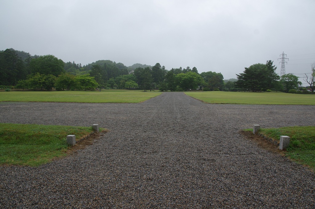 写真2は、南門跡を入れて、西奥に毛越寺を捉えたものです。