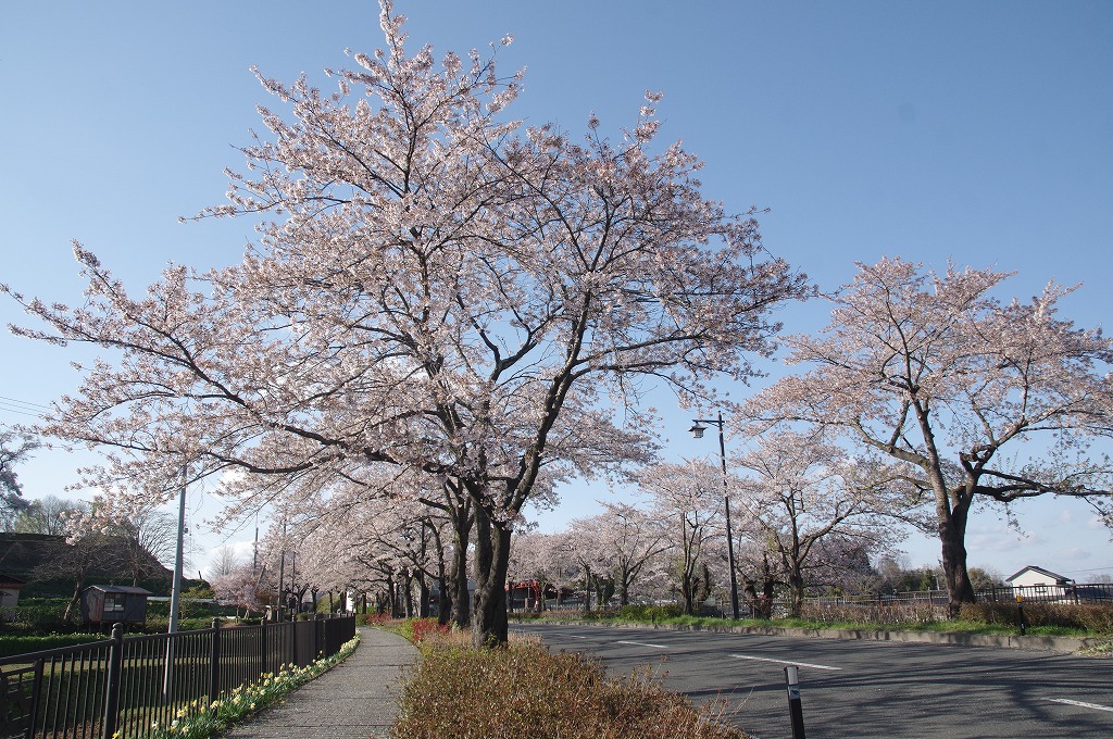 平泉の国道300号線の毛越寺口十字路の少し北から中尊寺入口先まで約1.5kmにかけて桜並木があります。2021年4月15日(木)午後、旅館に入る前に桜を愛でてきました。満開を少し過ぎて散り始めましたが、この写真をお見せします。