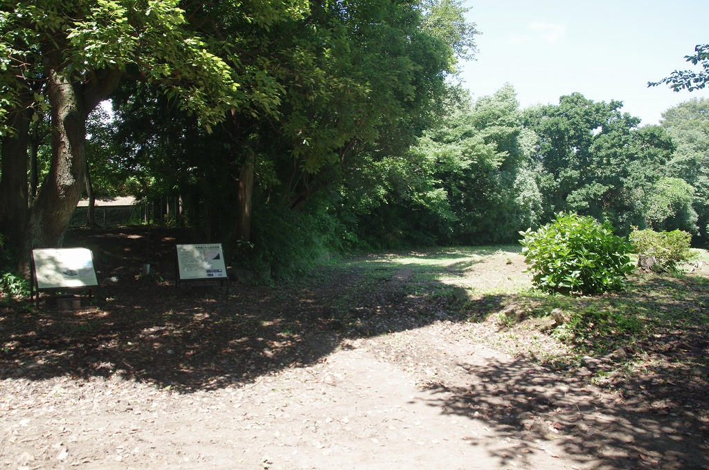 屈折部には東堀との間の土塁が切られて通路となっています。写真13は、奥が東堀土塁です。現在の中堀は通路よりわずかに低いですから、中堀は相当埋められていることになります。