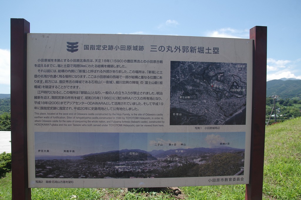最後の写真8は、正面に石垣山を見る所に立てられている「三の丸外郭新堀土塁」説明板です。