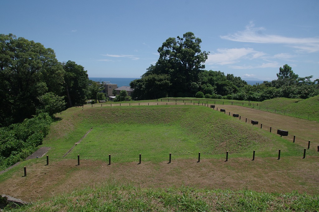 東堀南口の道路対面先が三の丸外郭新堀土塁入口です。ここは旧閑院宮別邸跡で、開園時間は10~15時です。道路の海寄り(東堀からは左手)に箱根登山バスの城山四丁目バス停があります。小田原駅前西口からのいこいの森行が運行されています。ただし、日中は1時間に1本なので時刻表に注意してください。