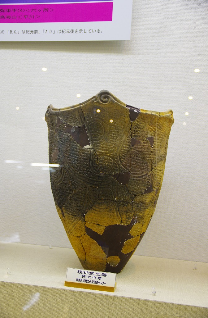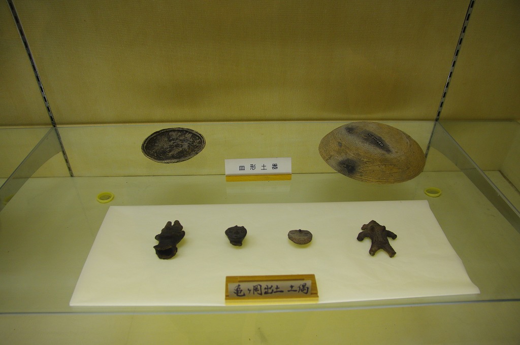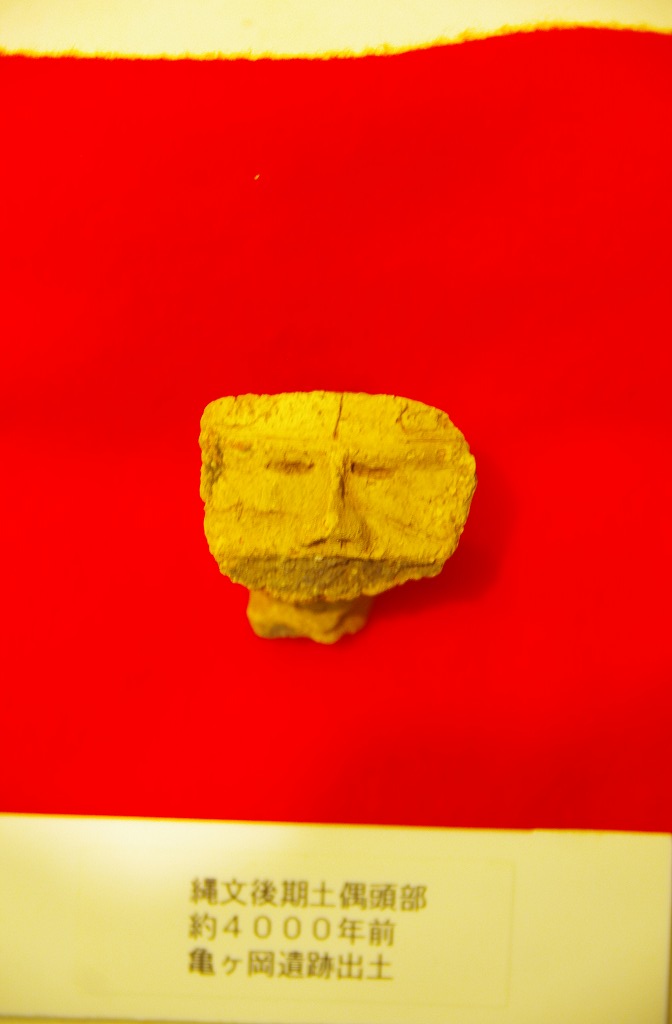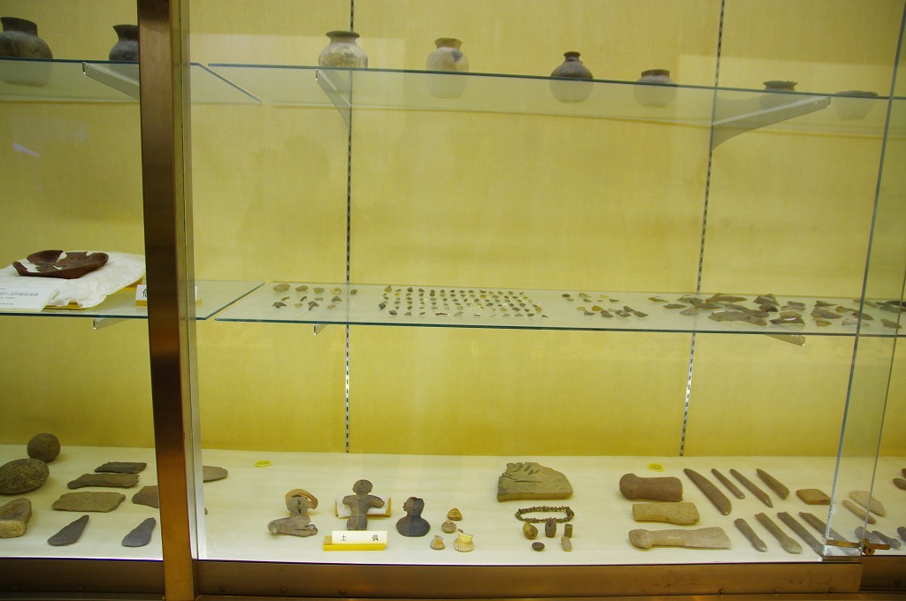 近くのつがる市木造亀ヶ岡考古資料室(青森県つがる市木造若緑52)に移動し、亀ヶ岡遺跡出土品の見学です。写真3は、土器・石器類の展示です。土偶・石棒・石斧・石鏃・壺型土器等です。