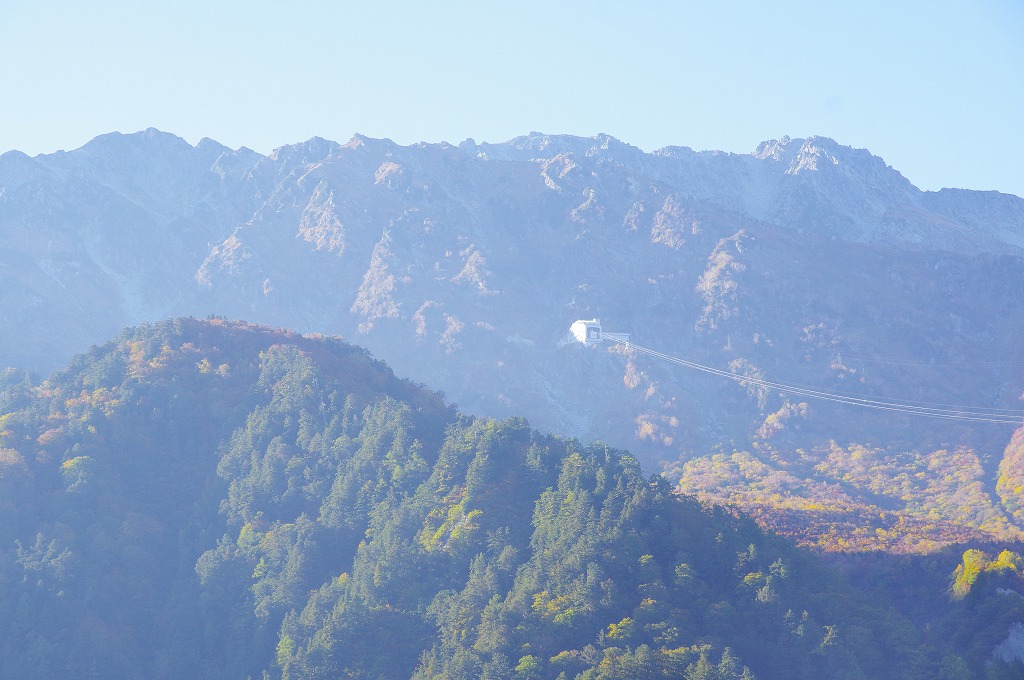 写真17は、戻りに西に白山へと撮ったもので、中央に大観峰に向かうロープウェイが見えます。またその下は紅葉しています。