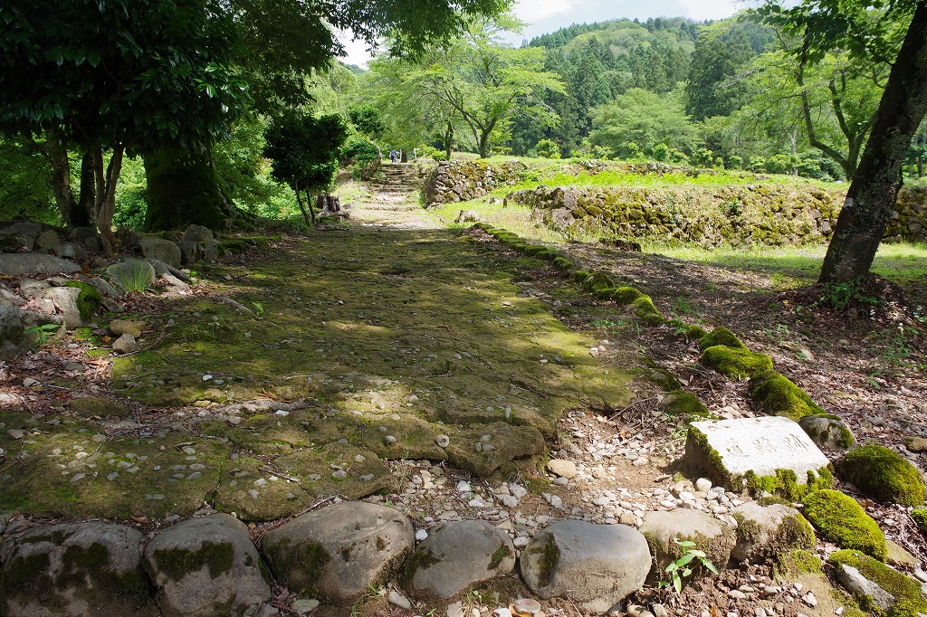 写真4は、中の御殿跡への上り道(遺構)で、御覧のように石板が引かれ、脇に石溝が設けられています。