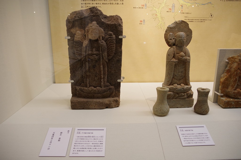 写真24は、石仏で、左が千手観音菩薩立像で元亀4年(1573)3月11日の銘があります。右は地蔵菩薩立像です。