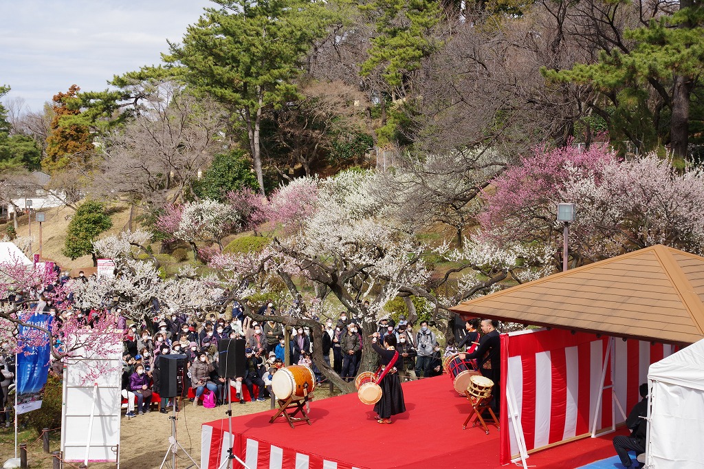 最後は、25日(土)・26日(日)に開かれる第35回大倉山寒梅会での「和太鼓ユニット三色だんご」による和太鼓演奏風景です。本会はコロナにより3年振りのものです。