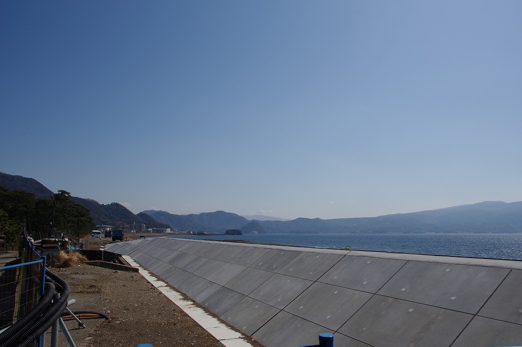写真6は、海岸から南を見たものです。防潮堤を工事中でした。