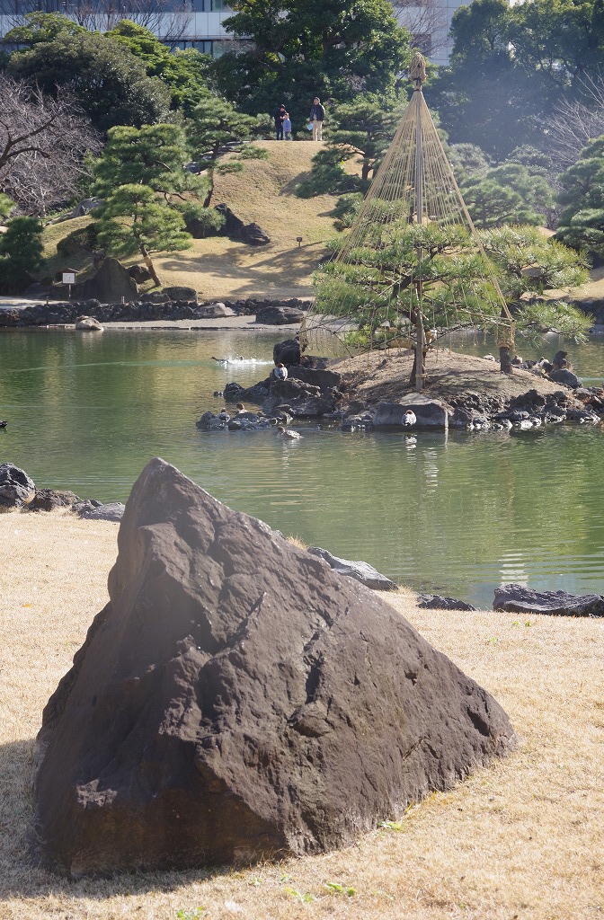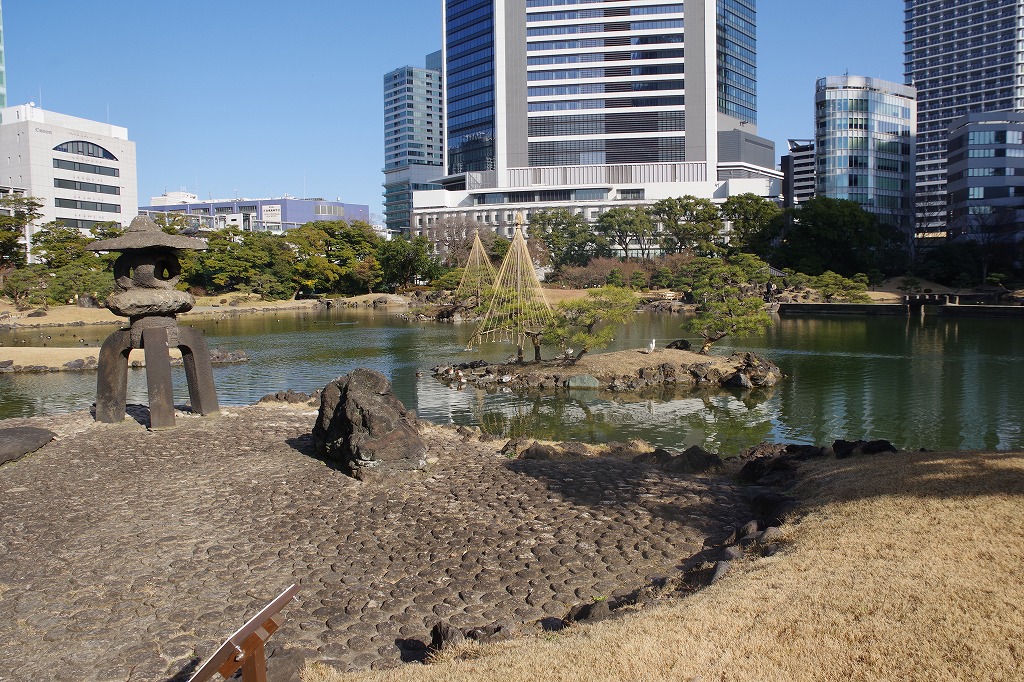 2025年2月15日(土)、武蔵野文化協会・国宝史蹟研究会共催の「旧芝離宮恩賜公園を散策」に参加しました。本地は海であったのが明暦年間(1655~58)に埋め立てられ、延宝6年(1678)に老中大久保忠朝の邸地となり、上屋敷建築に際して、領地小田原から庭師を招き作庭し、「楽寿園」と名付けました。その後拡張され総面積48.600㎡となりました。数代を経て、幕末には紀州徳川家の別邸芝屋敷となりました。明治維新後、1875(明治8)年に芝離宮となり、1923(大正12)年の関東大震災で全ての建物等が焼失しました。翌年に皇太子(昭和天皇)成婚記念として東京都に下賜され、公園として整備され現在に至っています。