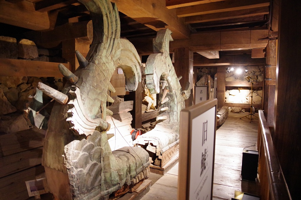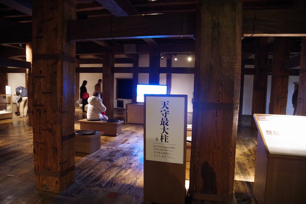 写真10は、地階と1階の2本の通し柱で包柱をもたない天守最大柱です。