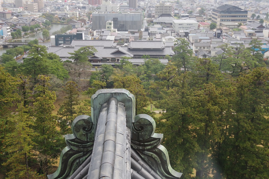 写真11は、最上階(5階)からの松江市街(東)です。正面の建物は内堀外の松江歴史観です。