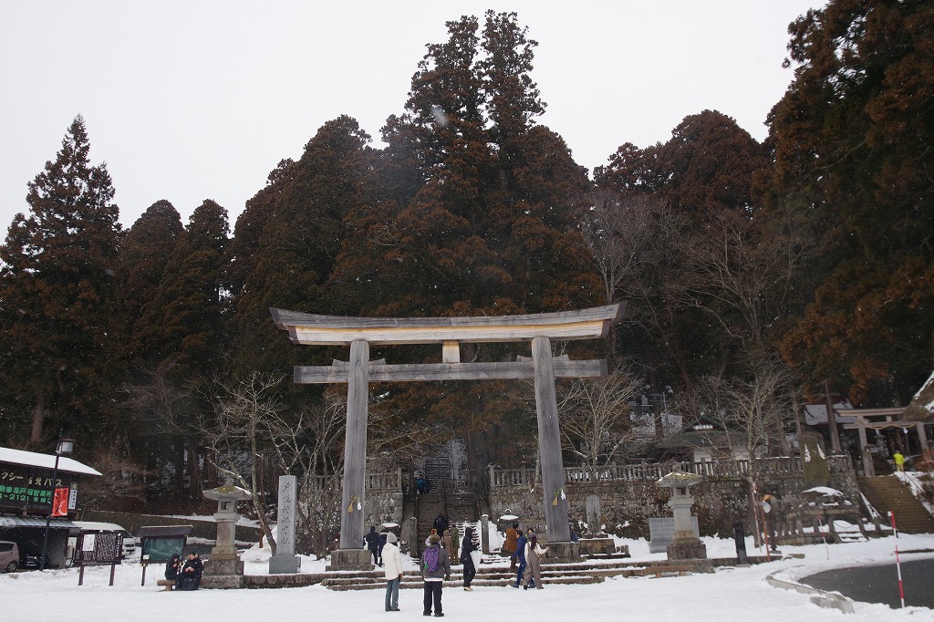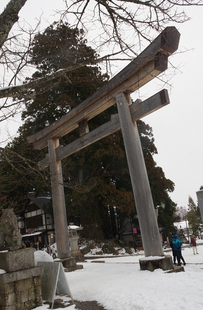 写真2は、大鳥居です。右奥が三本杉の一本です。