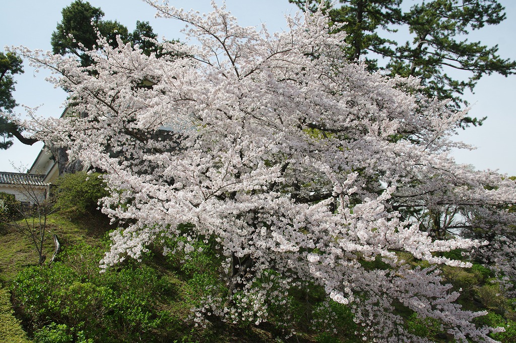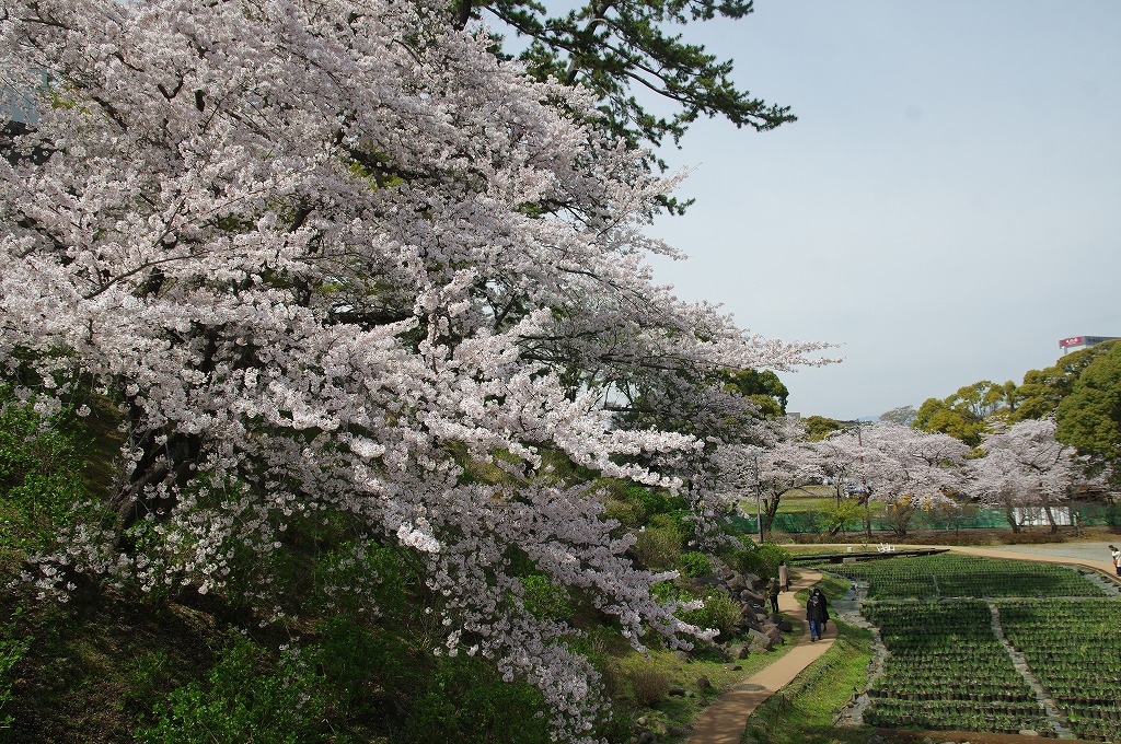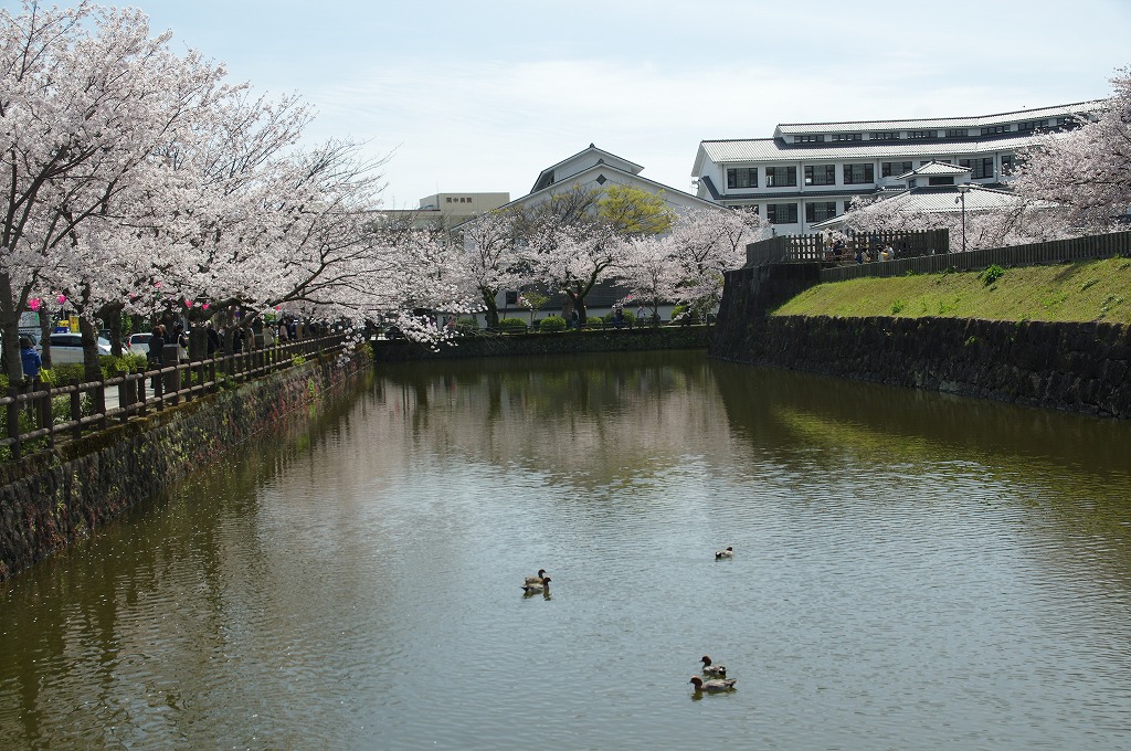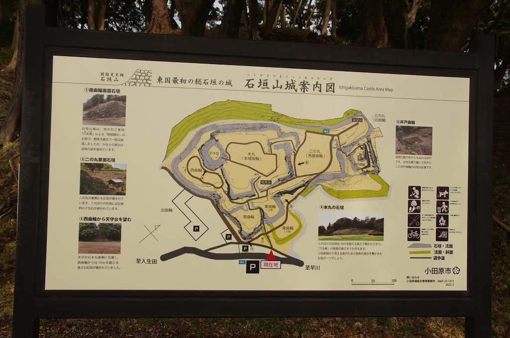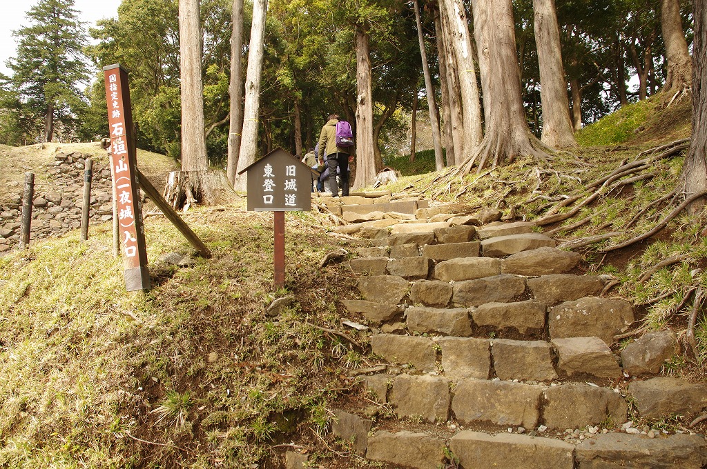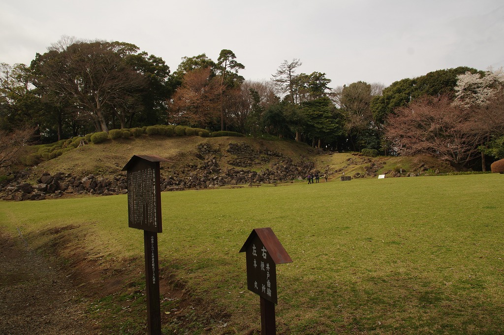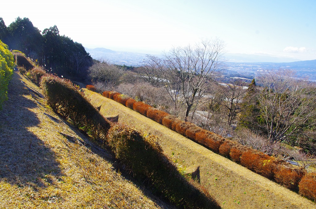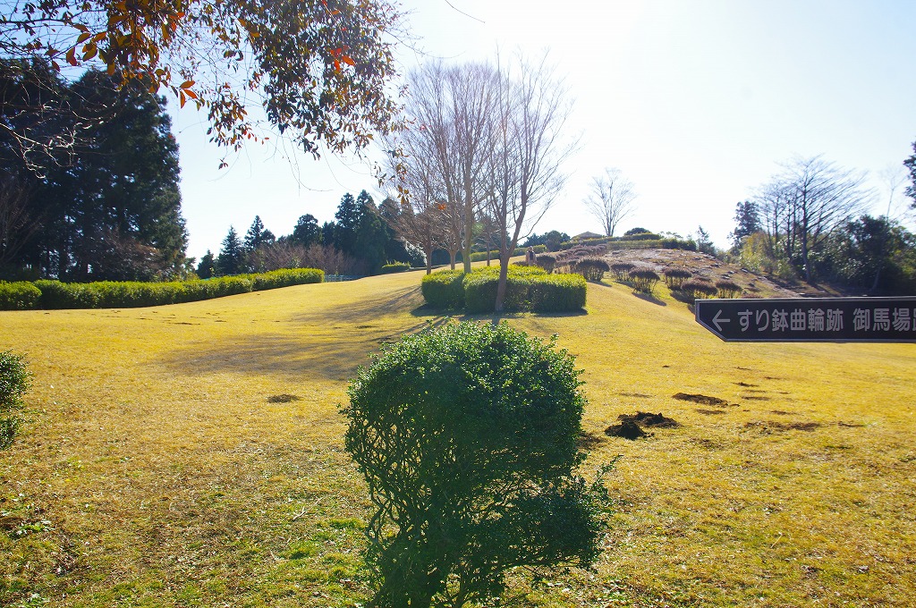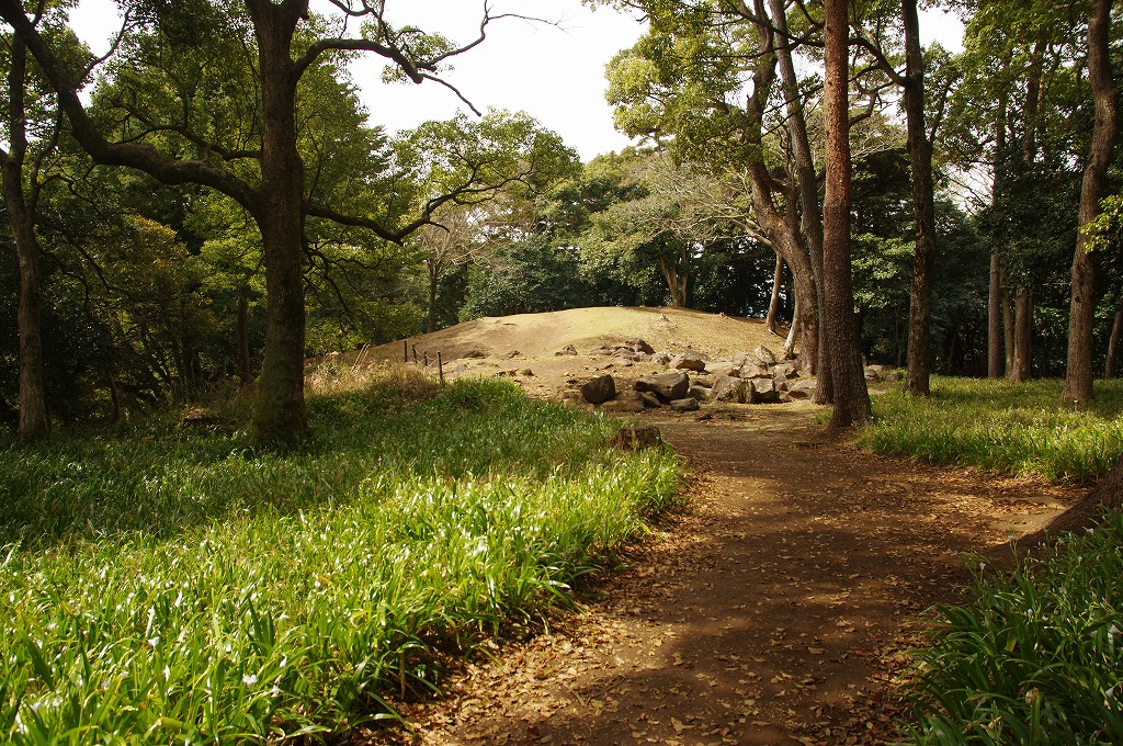 時間の関係で本郭、一ノ郭、二ノ郭、西ノ郭、南ノ郭からなる館跡全体を見学することはできず、写真7の、本郭のみです。門土橋前から右へと土塁と空堀を撮りました。
