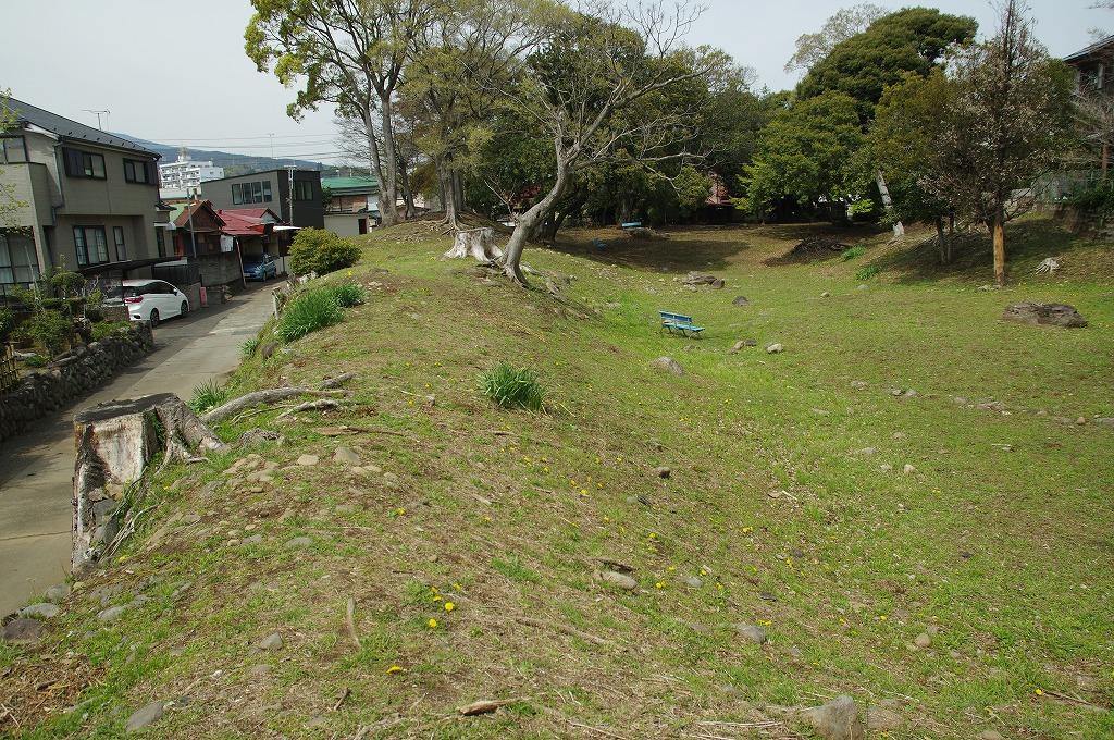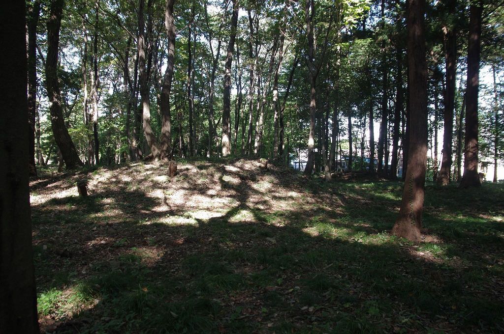 写真3は、大蔵神社内から見た西南角の土塁跡です。西南角は一段と高く、館の中心と考えられます。