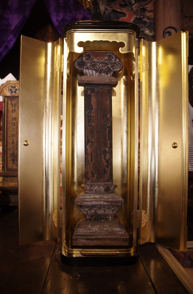 写真12は、源頼家の妾比企能員の娘若狭局が逃れて持ち帰ったと伝承のある源頼家位牌です。本堂本仏の右前脇にあります。3行にわたって、「鎌倉二世源姓頼家」「長福寺殿當寺開基大相国公一品寿福義仁大居士」「元久元年甲子七月一八日」、記されています。明らかに江戸時代のものと思われます。
