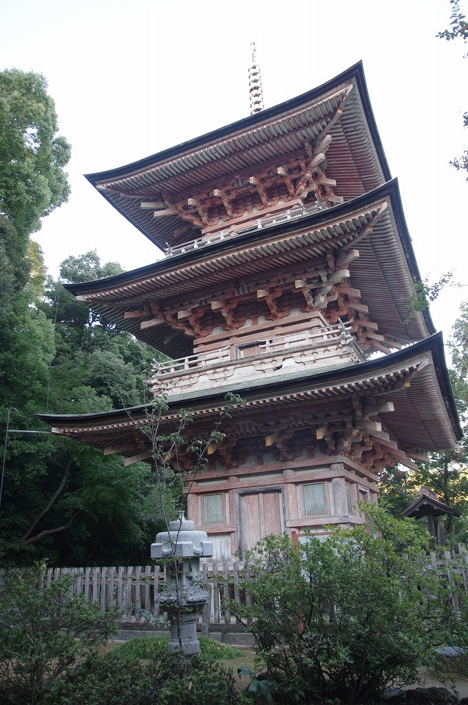 写真18は、三重塔です。寛永年間(1624~8)の再建で、現存する最も古い建築物で、総高24.3mです。