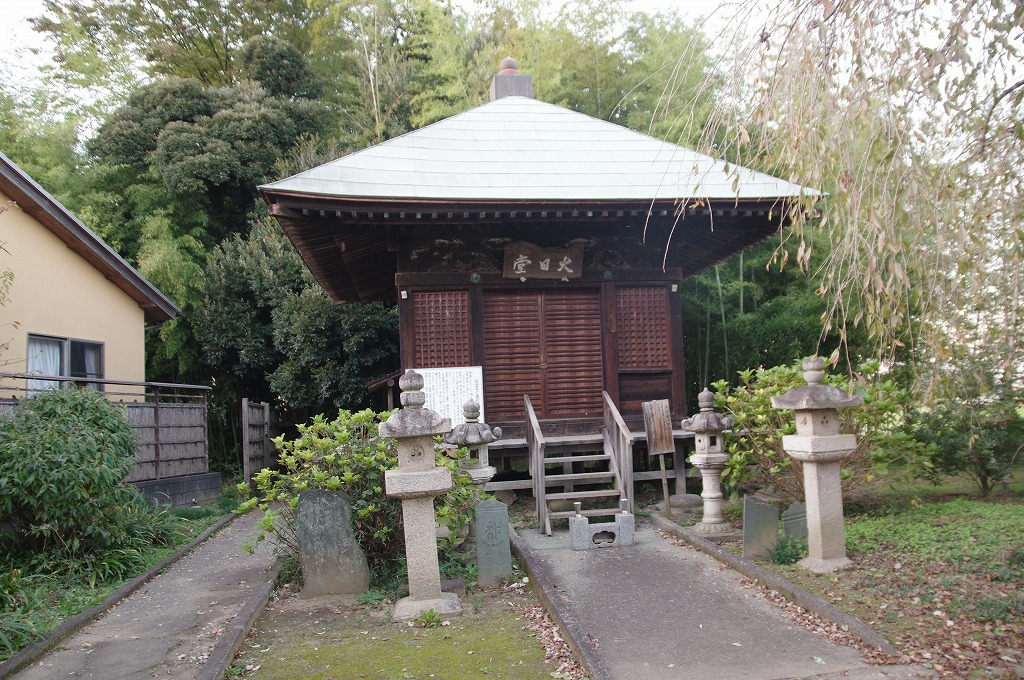 最後の訪問地は真言宗智山派清月山金剛寺(比企郡川島町中山1198)です。本寺は比企左馬助政員・則員親子が中興しました。則員は比企能員の孫員茂の子孫と称していて、旗本となりました。これによりこの地は比企氏館跡とされています。写真19は、本堂の右に入った所にある比企氏の位牌堂である大日堂です。